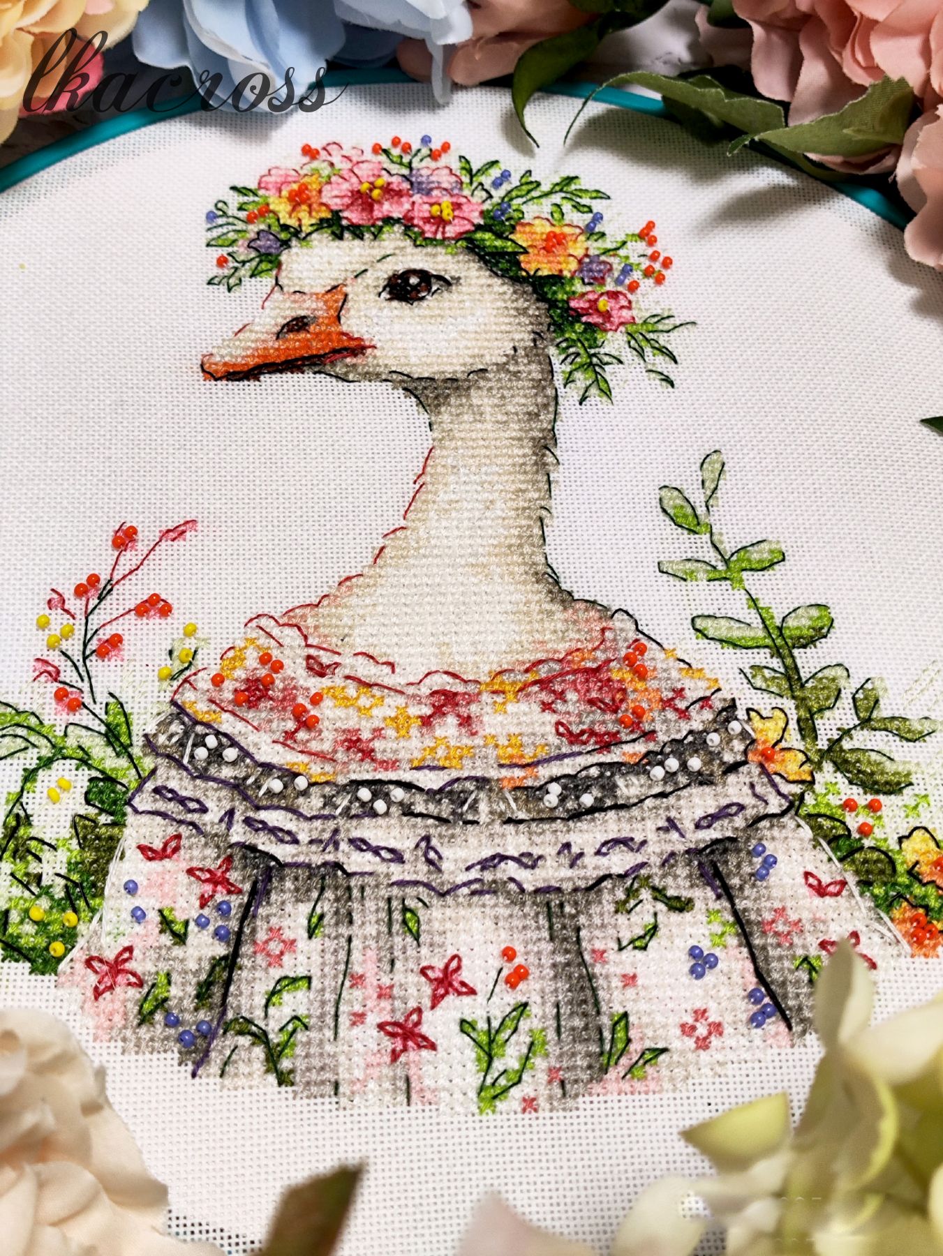 Используемые стежки: Крест, полукрест, бэкстич, бисер.